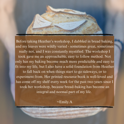 Bread baking is a journey and hiccups are normal, however with a strong foundation you will know how to assess what went wrong and move forward! Beginners are welcome and amateur bakers will also get something out of this experience. We’ll also be enjoying a homemade seasonal lunch during the workshop!